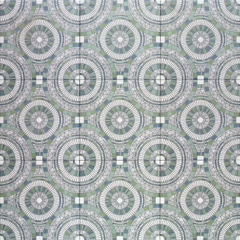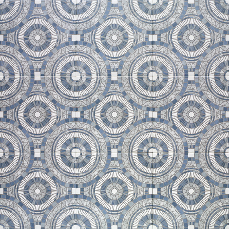 El azulejo Decor Halo 20×20 de Mainzu es un porcelánico decorativo con diseño geométrico de inspiración radial en tonos grises, azules y verdes, ideal para suelos y paredes en interiores y exteriores. Perfecto para crear espacios con personalidad y alto impacto visual.