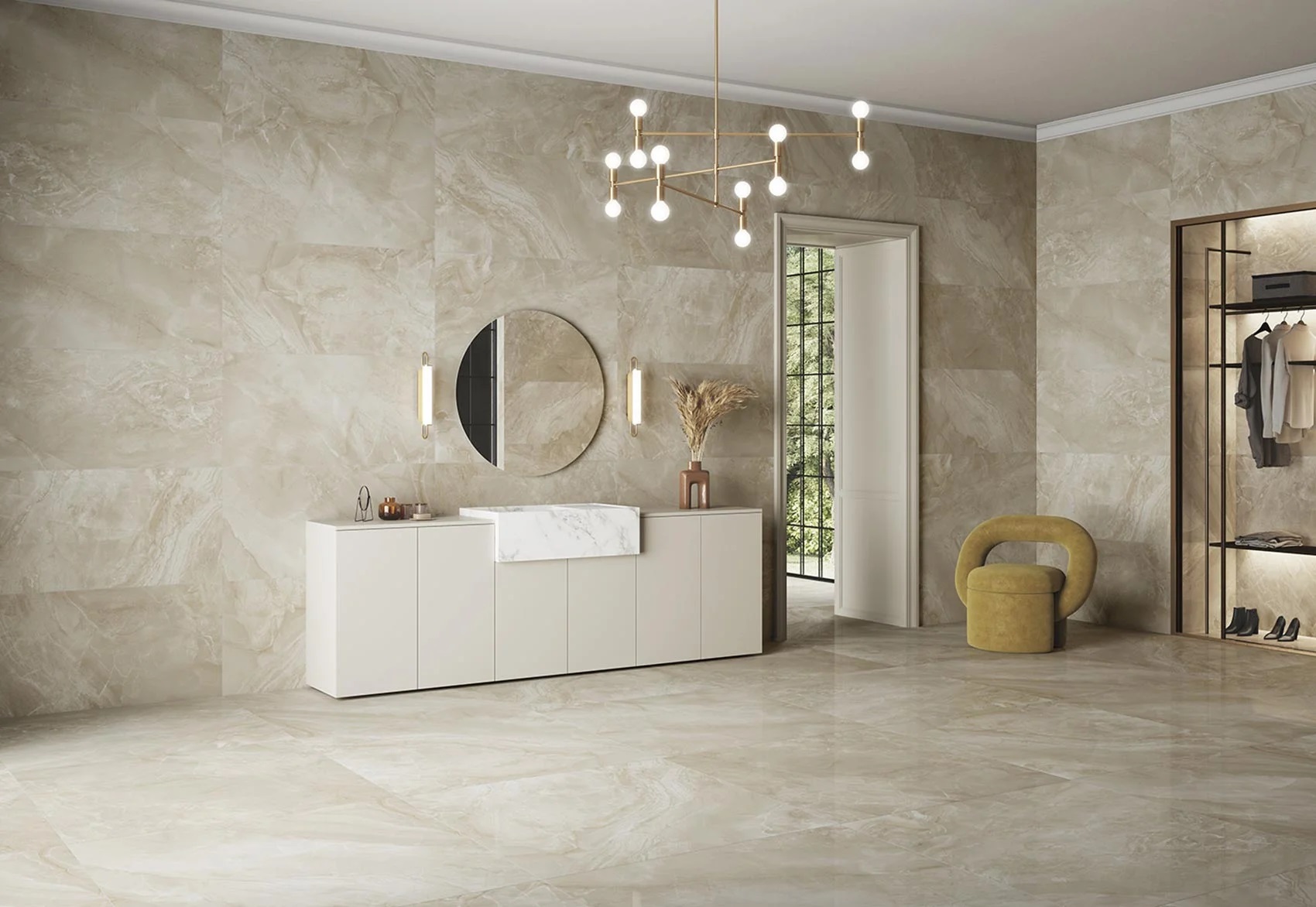 El azulejo Clothy Marfil es un porcelánico pulido de alta calidad, diseñado para proyectos que exigen una estética refinada y funcional. Su tono suave es perfecto para potenciar la luminosidad natural de los interiores.