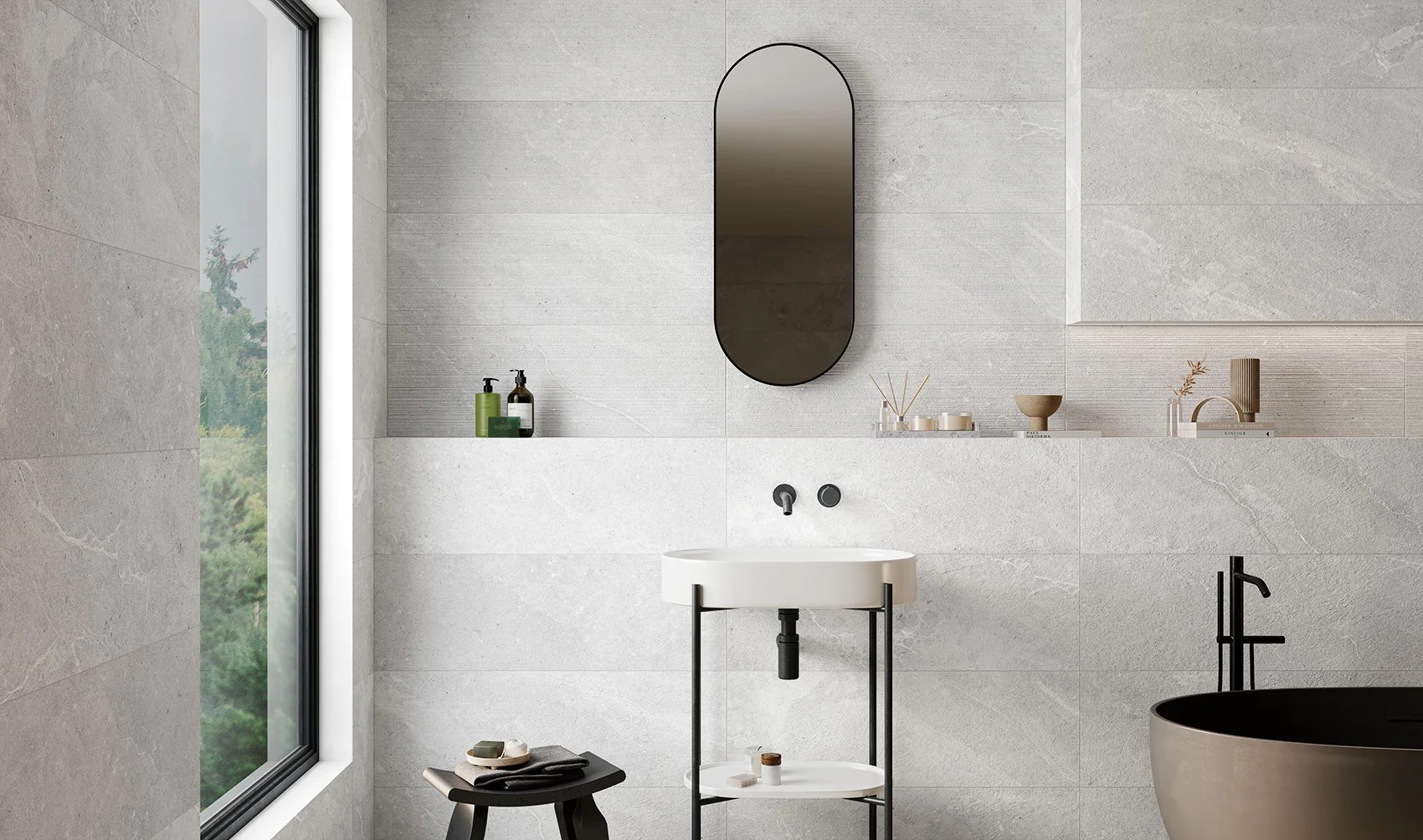 El porcelánico blanco combina fácilmente con cualquier tipo de mobiliario y materiales como madera, microcemento, piedra natural o metal. Es una solución atemporal que nunca pasa de moda y que aporta sensación de limpieza y amplitud.