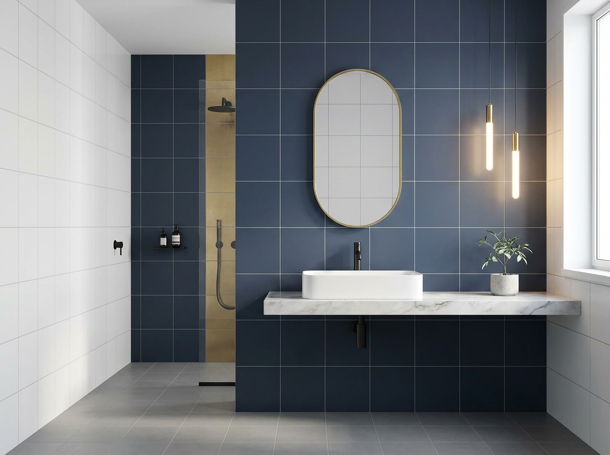 Perfecto para baños, cocinas, salones o espacios comerciales, Element Navy es ideal para aquellos que desean incorporar un color vibrante pero equilibrado, que se adapta a una variedad de estilos y ambientes.