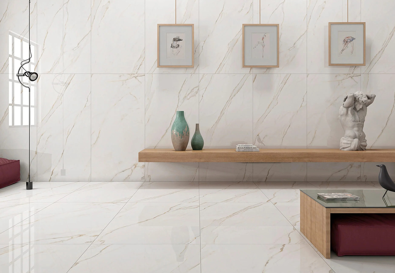 Cada formato de Golden White está diseñado con un espesor que garantiza una larga vida útil. Por ejemplo, el formato 90×90 tiene un espesor de 9 mm, mientras que los formatos más grandes, como 60×120 y 120×120, presentan espesores de 10,5 mm y 10,2 mm, lo que asegura su robustez en instalaciones de gran volumen. Estos detalles hacen que el azulejo sea una opción perfecta para aquellos que buscan un producto que resista el paso del tiempo sin perder su atractivo.
