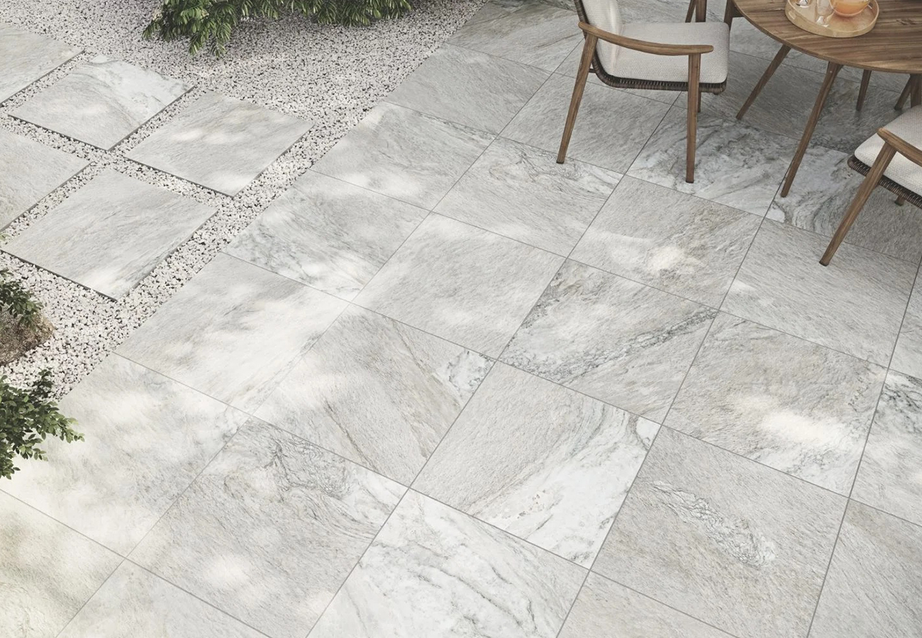La serie Piazza 20mm está disponible en el formato 60×90, lo que ofrece gran flexibilidad en su instalación, adaptándose a todo tipo de proyectos. El rectificado de las piezas permite un ajuste perfecto, con juntas finas y uniformes, lo que da como resultado una superficie continua y de aspecto impecable. Además, el acabado mate proporciona un toque elegante y discreto que se integra perfectamente en cualquier espacio exterior.