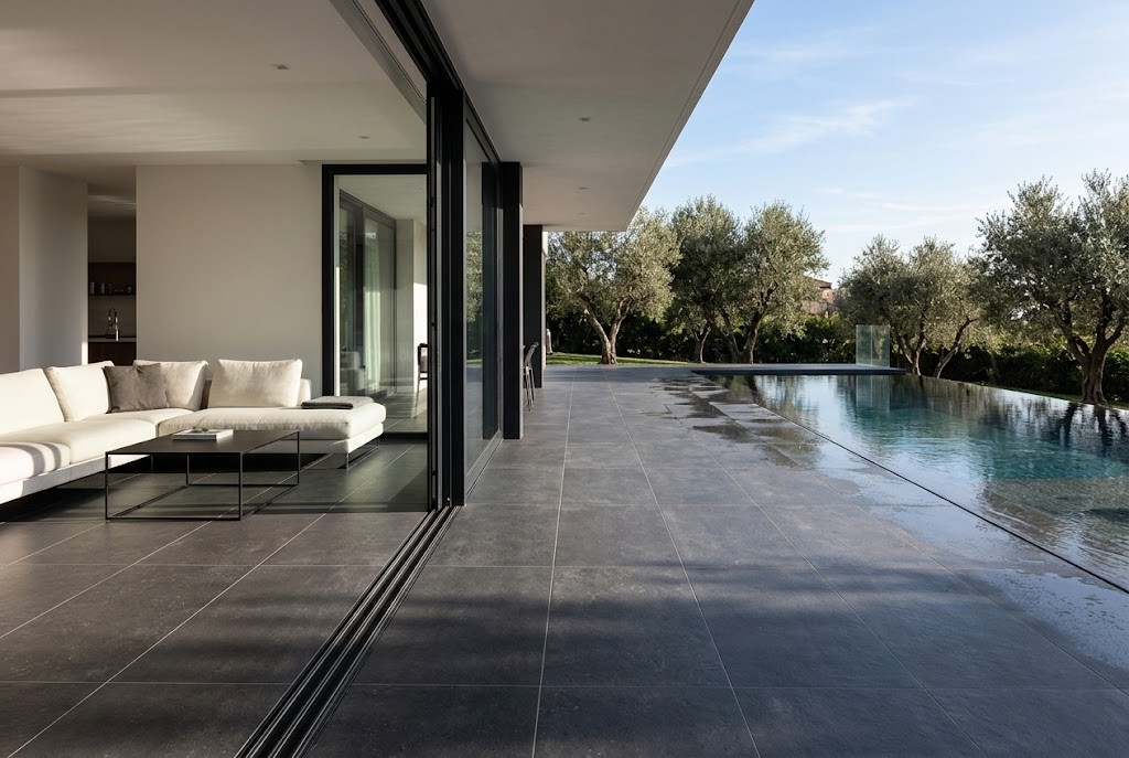 La serie Amalfi es un azulejo porcelánico rectificado mate imitación piedra, disponible en cuatro colores. Ideal para interiores y exteriores gracias a su tecnología “Slipstop” antideslizante, que garantiza mayor seguridad en piscinas y terrazas. Además, su tacto sedoso aporta confort y elegancia a cualquier espacio.