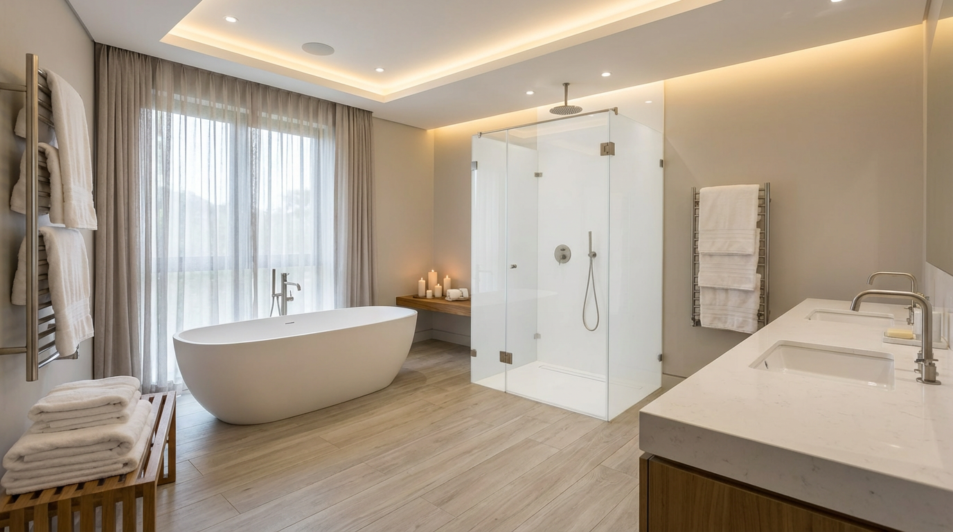 Blanco,beige,roble y taupe.